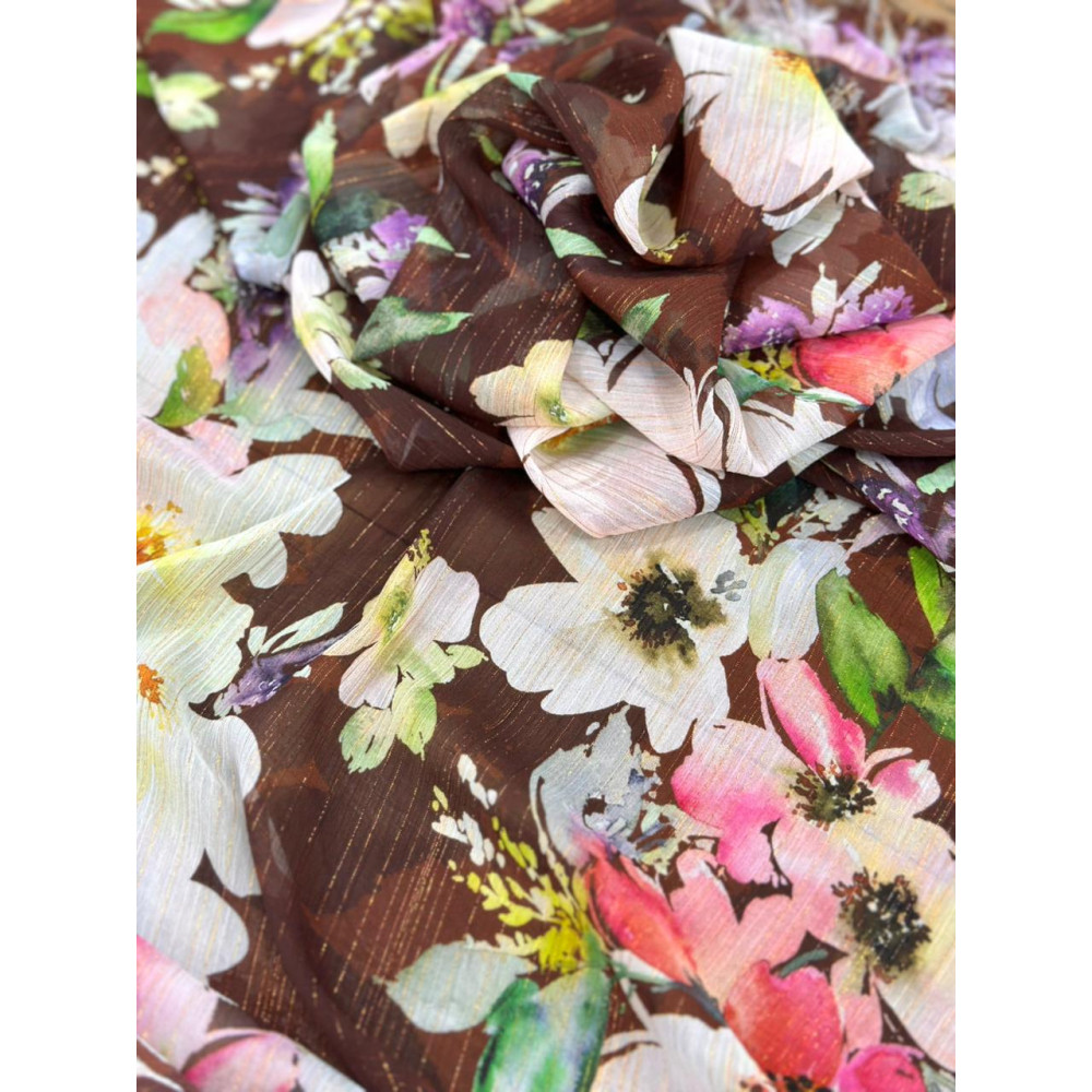 Chiffon Italiano Floral Fios Fourados